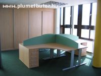 Irodabútor natúr cseresznye színben, szintén laminált bútorlapból. Elosztó és Internet csatlakozó az asztallapba süllyesztve.