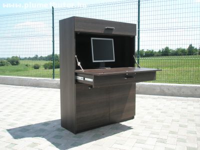 Mérete: 100*136*38 cm (szél*mag*mély). Kisebb lakásokba a legjobb megoldás, kis helyen elfér és mindennek meg van a maga helye. Alsó ajtók mögött található a PC, beltéri egység és a vezetékek. Középső osztott fiók nem csak irodaszerek tárolására alkalmas, hanem a golyós fiókcsúszónak köszönhetően megbízhatóan alátámasztja az írófelületet melynek mérete: 100*46 cm. Felső ajtó mögött iratok, ill. CD tárolására alkalmas helyet hagytunk.
