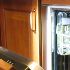 Tölgyfa konyhabútor. Sötét barnára pácolva, selyemfényű lakkal felületkezelve, tömör tölgyfa frontokkal. Beépített termékek: 2 és 3 részes kihúzható palacktartó, fűszer fiók, hűtő, kihúzható páraelszívó.